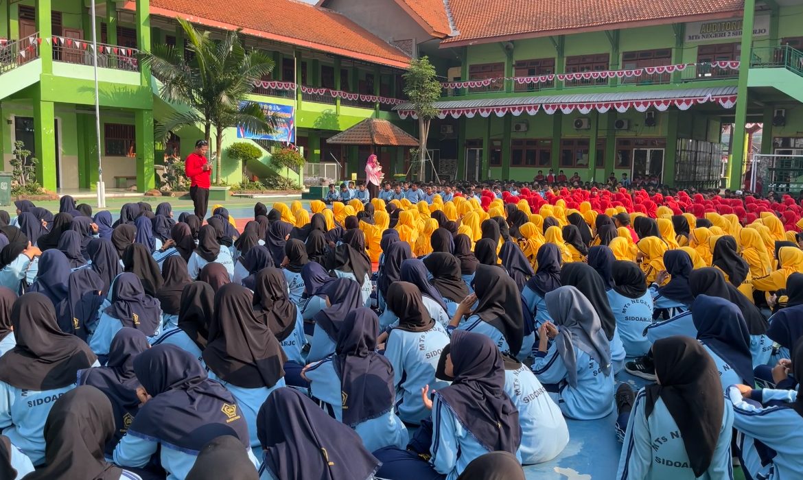 MTs Negeri 2 Sidoarjo – Sebanyak 951 siswa MTsN 2 Sidoarjo mengikuti kegiatan Sosialisasi dan Penyuluhan Bahaya Narkoba yang diselenggarakan pada Jumat, 15 Agustus 2025 di lapangan utama madrasah. Kegiatan ini bekerja sama dengan Badan Narkotika Nasional (BNN) Kabupaten Sidoarjo sebagai bagian dari upaya pencegahan dan edukasi sejak dini kepada pelajar mengenai bahaya penyalahgunaan narkoba.