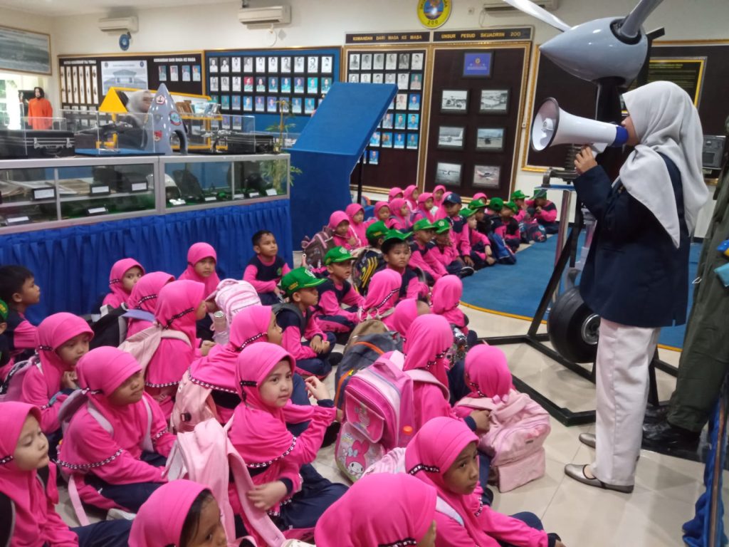 Peserta didik diajak berpetualang menggunakan dua bus milik TNI AL menuju Museum Pesawat TNI AL. Di sana, mereka mendapat kesempatan unik untuk masuk ke dalam pesawat, duduk di kokpit, bahkan berperan sebagai pilot. Tak hanya itu, anak-anak juga mengenal berbagai perlengkapan militer seperti jaring penyelamatan, melihat miniatur pesawat tempur, serta menonton film edukatif tentang latihan TNI dan kisah inspiratif tentang kerja sama semut dalam menghadapi bahaya.