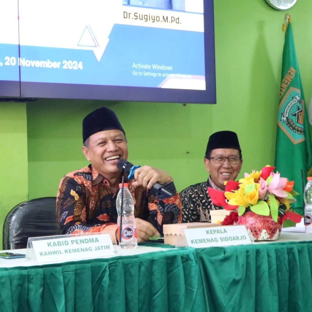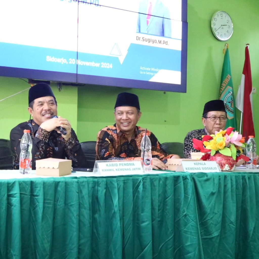 Sidoarjo, 20 November 2024 – Sebanyak 60 peserta yang terdiri dari guru dan karyawan MTs Negeri 3 Sidoarjo hadir dalam kegiatan pembinaan yang diberikan oleh Kepala Bidang Pendidikan Madrasah (Kabid Pendma) Kanwil Kementerian Agama (Kemenag) Provinsi Jawa Timur, Dr. Sugiyo, M.Pd. Pembinaan tersebut dilaksanakan di MTsN 3 Sidoarjo pada Rabu, 20 November 2024, dengan tujuan untuk meningkatkan kualitas pendidikan dan pemahaman keagamaan di madrasah.