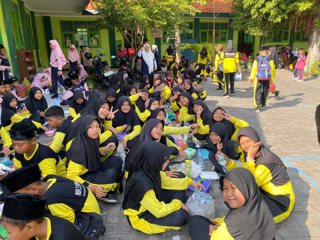 Usai berolahraga, seluruh siswa menikmati bekal bergizi yang mereka bawa dari rumah menggunakan wadah ramah lingkungan. Pihak madrasah juga membagikan susu sebagai tambahan nutrisi. Momen sarapan bersama ini tak hanya menyehatkan, tetapi juga mempererat keakraban antara siswa dan guru wali.