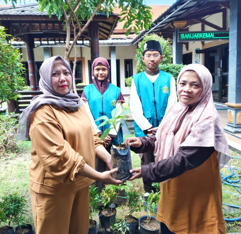 Puncak sepekan penuh peringatan Hari Bumi 2026 di MIN 1 Sidoarjo, Jumat (24/4) menjadi babak penutup yang emosional sekaligus membanggakan. MIN 1 Sidoarjo melakukan aksi Sedekah Tanaman. Secara khusus, pihak madrasah menyerahkan bibit tanaman kepada Kepala Desa Banjarkemantren yang dilakukan oleh kader adiwiyata yang didampingi Kepala Madrasah untuk memberikan tanaman kepada Kepala Desa Banjar Kemantren.