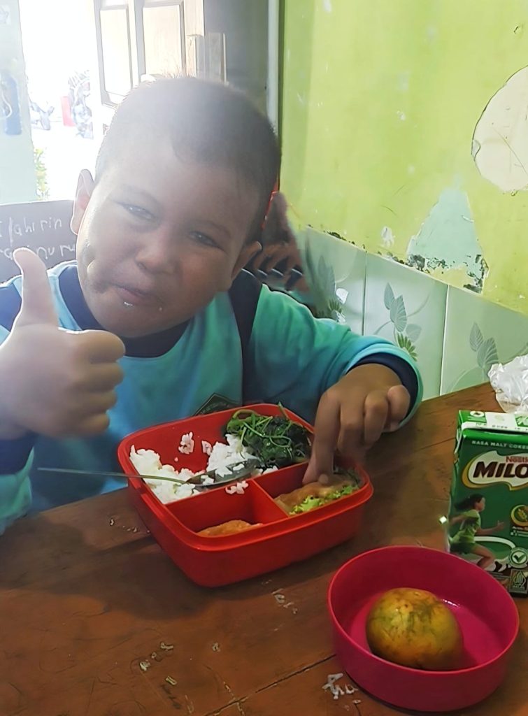 Setelah sesi senam yang energik, para peserta didik diajak untuk menikmati sarapan sehat 4 sehat 5 sempurna yang menginspirasi kebiasaan makan bergizi. Menu sarapan pagi ini terdiri dari ikan, sayur, buah, dan susu, sebagai bentuk edukasi pentingnya asupan nutrisi lengkap untuk pertumbuhan optimal.