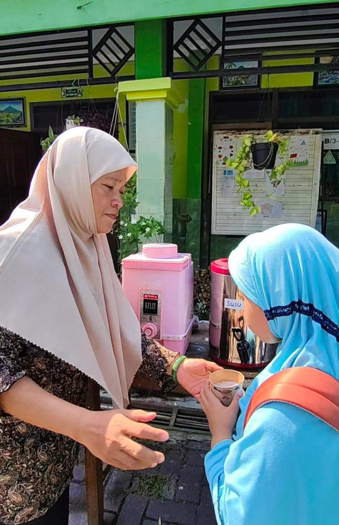 Sebagai puncak kegiatan peringatan Hari Anak Nasional 2025, MIN 1 Sidoarjo membagikan ratusan gelas susu sapi segar kepada seluruh peserta didik. Pembagian susu ini bertujuan untuk mendukung pembentukan generasi emas yang kuat, sehat, dan cerdas, siap memimpin dan membangun bangsa di masa depan. Menariknya, pembagian susu sapi segar ini dilakukan dengan menggunakan gelas kertas ramah lingkungan yang mudah didaur ulang, menegaskan komitmen MIN 1 Sidoarjo sebagai madrasah yang peduli terhadap kelestarian lingkungan.