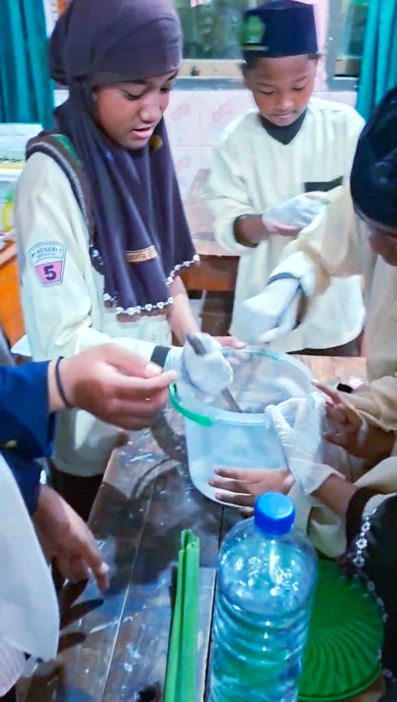 Setelah melalui serangkaian praktik, para peserta didik berhasil menghasilkan sabun herbal yang dapat digunakan sebagai sabun cuci tangan dan sabun cuci piring beraroma jeruk. Produk sabun alami ini tidak hanya aman bagi kulit dan lingkungan, tetapi juga menjadi bukti nyata bahwa bahan-bahan sederhana di sekitar madrasah memiliki potensi besar untuk diolah menjadi produk bernilai guna. Kegiatan ini diharapkan dapat menjadi bekal bagi para peserta didik untuk lebih peduli terhadap lingkungan dan mampu mengembangkan potensi diri melalui kegiatan-kegiatan kreatif. (il)