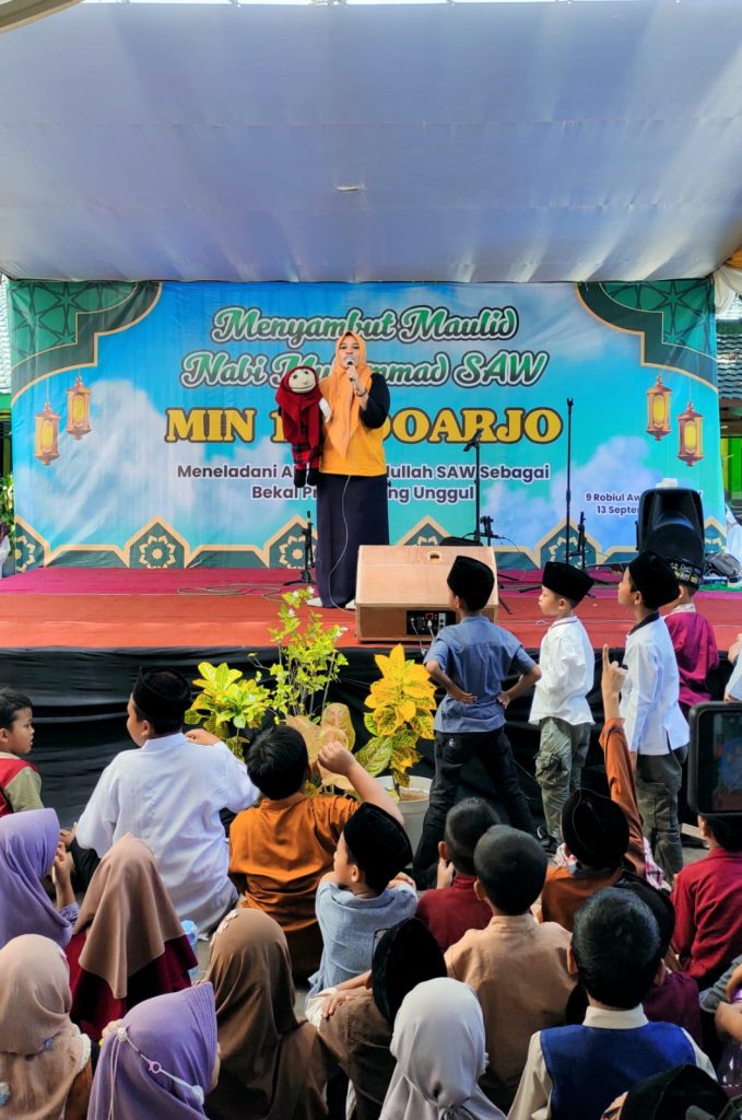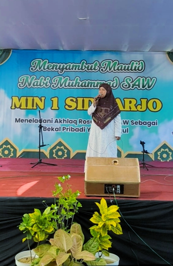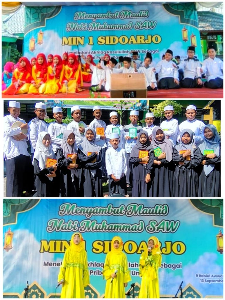 Pagi itu, sembari duduk lesehan mereka tampak antusias mengikuti beragam acara yang telah disusun oleh panitia. Berbagai macam pertunjukan seni yang ditampilkan oleh beberapa peserta didik MIN 1 Sidoarjo tampak menarik perhatian seluruh pasang mata sekitar 513 peserta didik. Kegiatan yang diawali dengan membaca doa dan asmaul husna bersama dilakukan di halaman madrasah negeri 1 Sidoarjo. Peringatan Hari Besar, hari lahir Nabi Muhammad SAW dimeriahkan oleh beberapa penampilan peserta didik dari menyanyikan lagu Islami, banjari, persembahan da’i cilik, dan ditutup oleh pembacaan diba’ dan sholawat bersama.