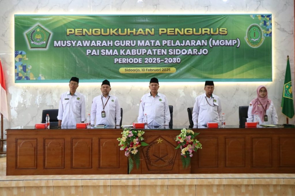Sidoarjo, 10 Februari 2025 – Kepala Kantor Kementerian Agama (Kankemenag) Kabupaten Sidoarjo, Mufi Imron Rosyadi, mengukuhkan Pengurus Musyawarah Guru Mata Pelajaran (MGMP) Pendidikan Agama Islam (PAI) Kabupaten Sidoarjo untuk periode 2025-2030 di Aula Al Ikhlas I Kemenag Sidoarjo pada Senin, 10 Februari 2025.