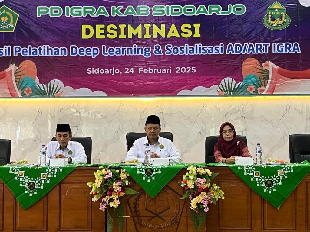 Sidoarjo, 24 Februari 2025 – Pelatihan Deep Learning dan sosialisasi Anggaran Dasar / Anggaran Rumah Tangga (AD/ART) Raudhatul Atfal (RA) se-Kabupaten Sidoarjo digelar pada Senin, 24 Februari 2025 bertempat di Aula Al-Ikhlas I, Kabupaten Sidoarjo. Acara tersebut dihadiri oleh Kepala Kantor Kementerian Agama Kabupaten Sidoarjo, Drs. Mufi Imron Rosyadi, M.EI, Kepala Seksi Pendidikan Madrasah (Pendma) Ahmad Fathoni, Ketua PD IGRA Kabupaten Sidoarjo, Safrotun Yuhayyik, M.Pd.I, serta seluruh Pengurus Kecamatan IGRA se-Kabupaten Sidoarjo.