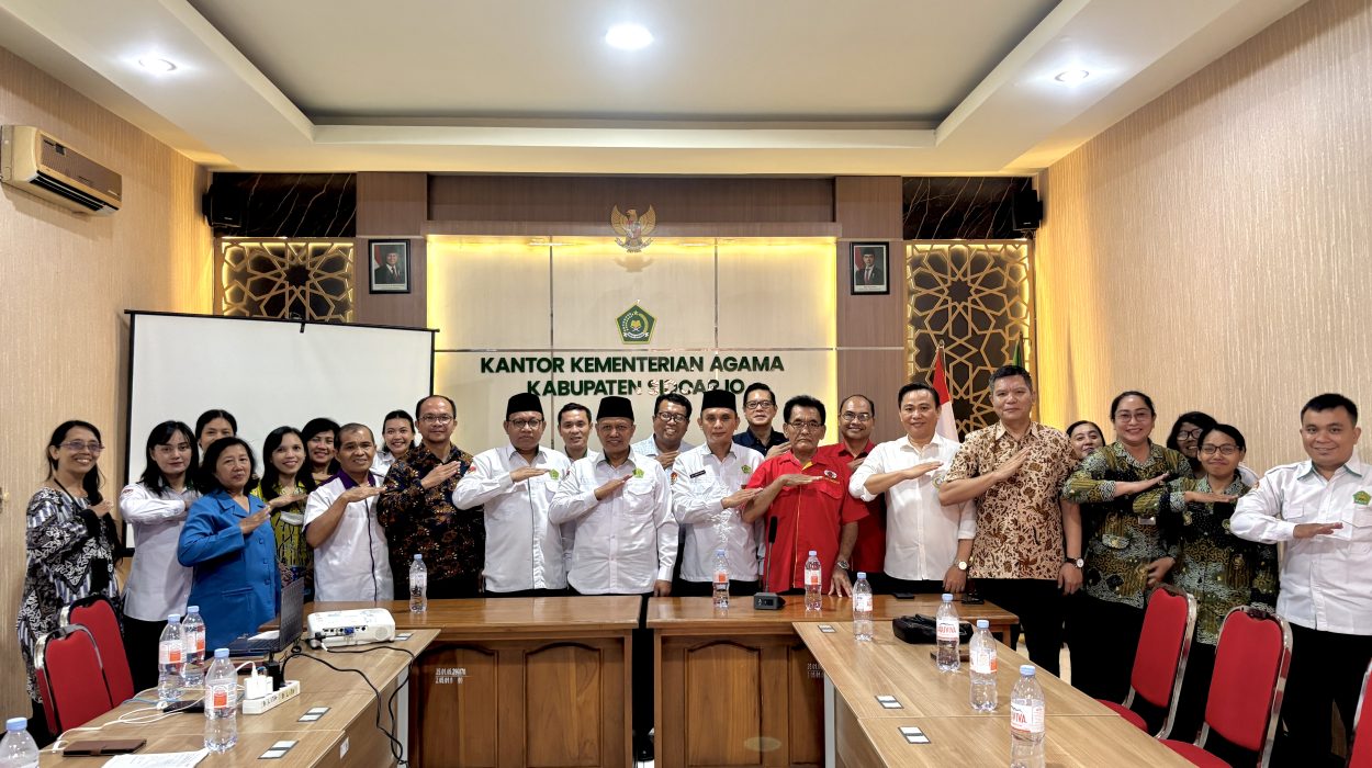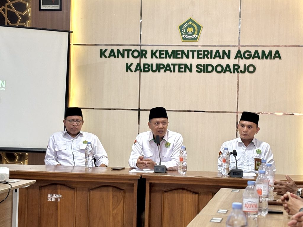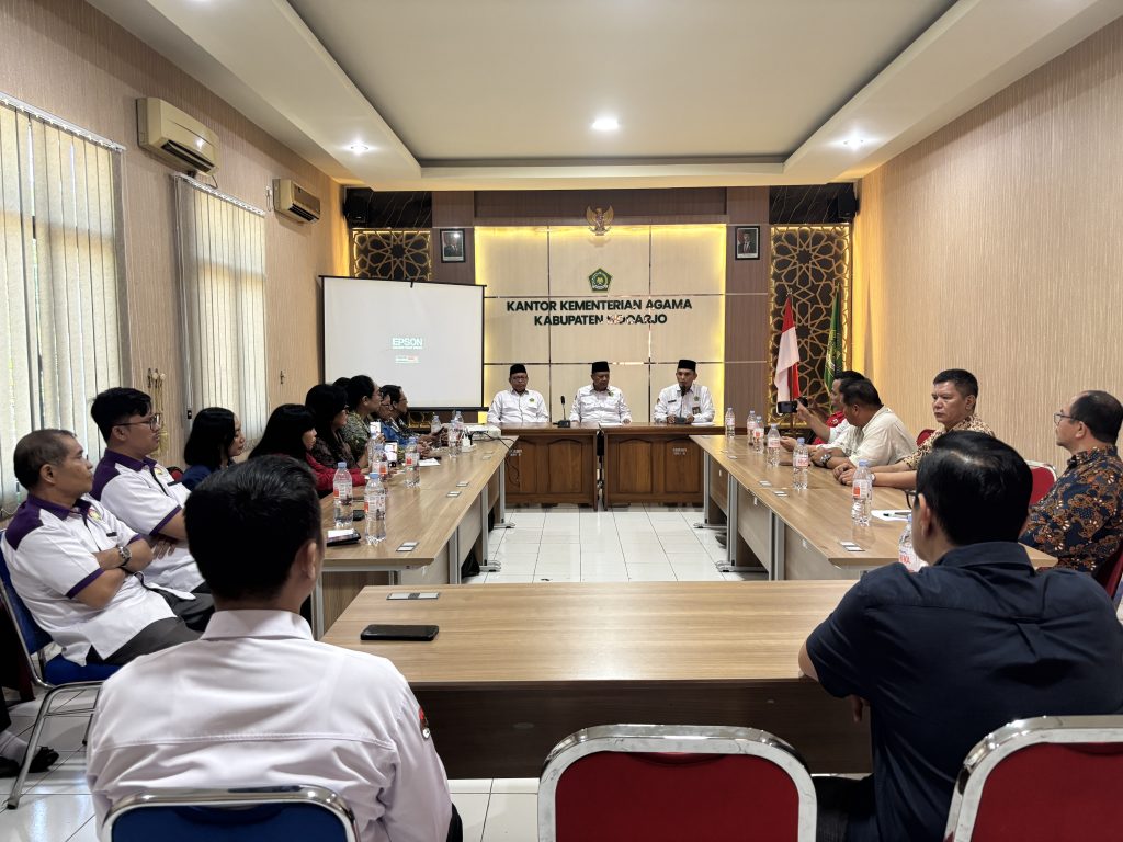Sidoarjo – Kepala Kantor Kementerian Agama (Kemenag) Kabupaten Sidoarjo, Drs. Mufi Imron Rosyadi, M.E.I, menekankan pentingnya menjaga kerukunan dan menguatkan moderasi beragama dalam kehidupan bermasyarakat. Pesan ini disampaikan saat kegiatan Sapa Pemimpin Gereja dan Guru Kristen yang digelar di Aula Al Ikhlas II Kantor Kemenag Sidoarjo, Selasa (14/10)
