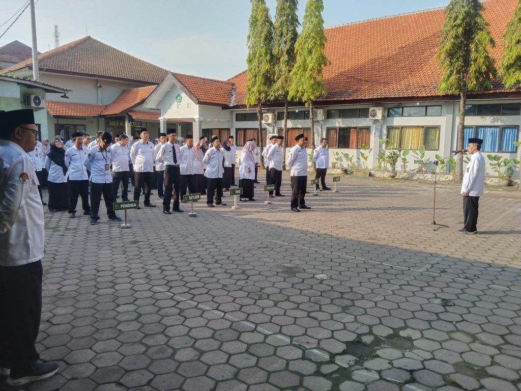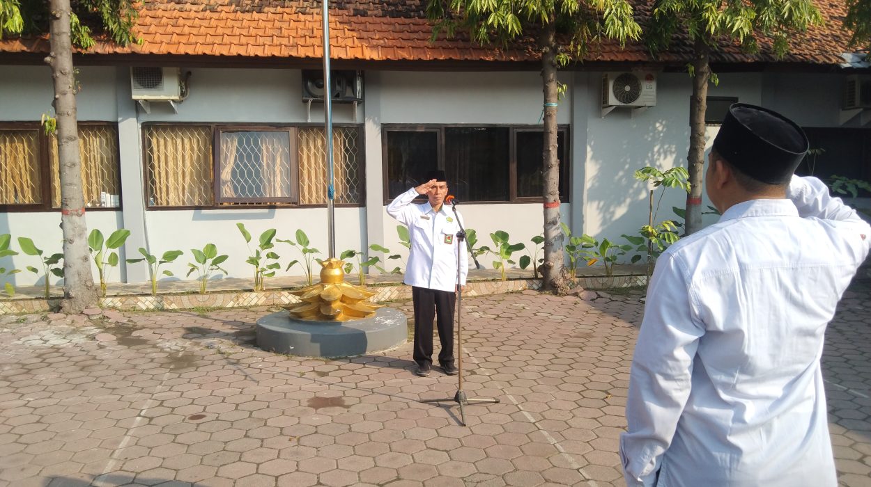 Sidoarjo, 14 Juli 2025 – Apel Senin pagi Kantor Kementerian Agama Kabupaten Sidoarjo pada 14 Juli 2025 berlangsung di halaman kantor Jalan Monginsidi Nomor 3. Kegiatan ini diikuti oleh Aparatur Sipil Negara (ASN) dari kantor induk dan Kantor Urusan Agama (KUA) Kecamatan Sidoarjo, dengan Kepala Seksi Pendidikan Madrasah (Pendma), Ahmad Fathoni, bertindak sebagai pembina apel.