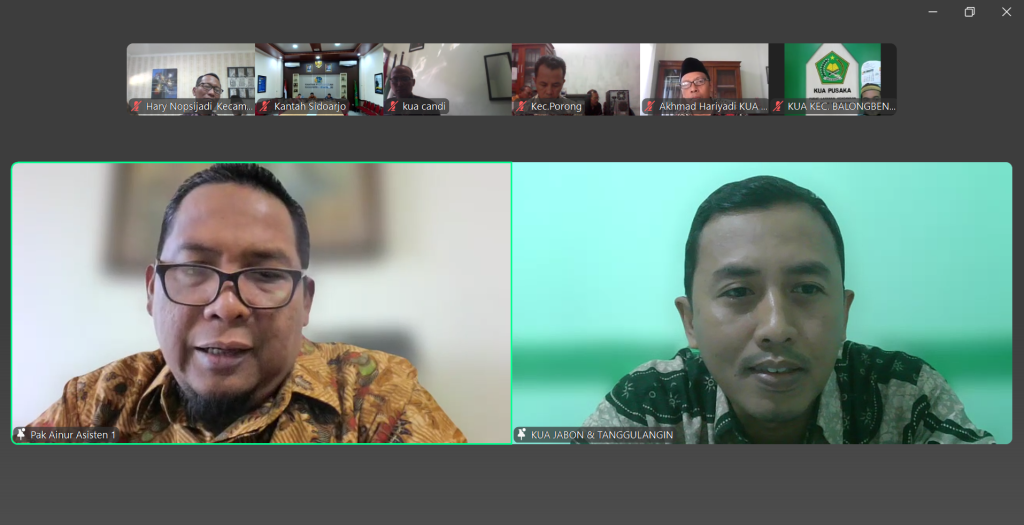 Sidoarjo, 31 Juli 2025 — Pemerintah Kabupaten Sidoarjo bersama Kantor Kementerian Agama Kabupaten Sidoarjo terus memperkuat kolaborasi dalam percepatan sertifikasi tanah wakaf. Hal ini ditunjukkan melalui pelaksanaan rapat koordinasi lanjutan yang digelar secara daring pada Kamis, 31 Juli 2025. Rapat dipimpin langsung oleh Asisten Pemerintahan dan Kesra Setda Sidoarjo, Mohammad Ainur Rahman, dan diikuti oleh berbagai pemangku kepentingan, termasuk seluruh Kepala KUA Kecamatan se-Kabupaten Sidoarjo. Fokus utama rapat adalah evaluasi progres pengajuan dari masing-masing kecamatan serta identifikasi berbagai kendala teknis di lapangan.