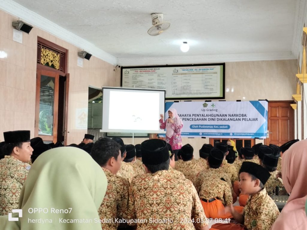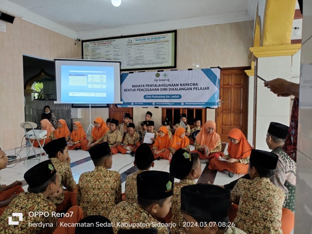 Kamis, 07 Maret 2024 menggelar Up Grading dengan tema “Pembentukan karakter Siswa dengan mewujudkan Generasi Milenial tanpa Narkoba. Narasumber yang hadir dalam kegiatan itu adalah Polsek dan Puskesmaskec sedati. Peserta yang hadir siswa-siswi kelas V dan VI yang berjumlah 210 Orang.