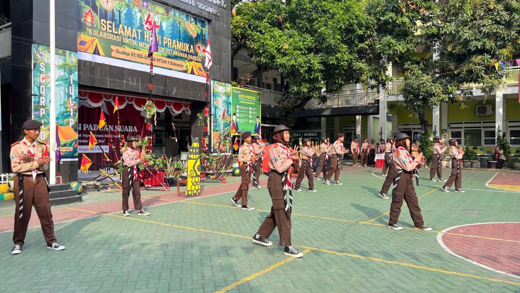 MTsN 1 Sidoarjo – Mengenang sejarah lahirnya Hari Pramuka yang berawal dari kemunculan Nationale Padvinderij Organisatue (NPO) di Bandung dan Jong Indonesische Padvinders Organisatie (JIPO) di Jakarta pada 1923 oleh Belanda serta disusul organisasi-organisasi kepanduan yang dikembangkan oleh pemuda Indonesia hingga terlahirnya gerakan Pramuka pada 14 Agustus 1961. Hal ini bersamaan dengan dianugrahkannya Panji Gerakan Pramuka yang ditetapkan lewat Keputusan Presiden Republik Indonesia Nomor 448 Tahun 1961.