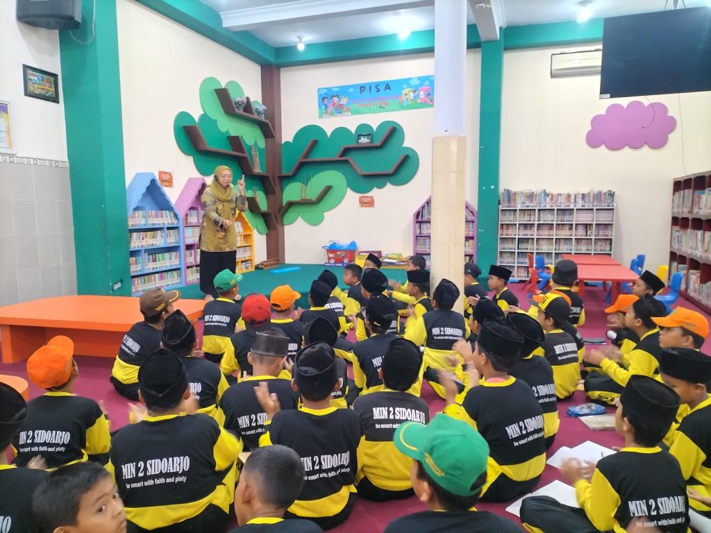 Kunjungan ke Perpusda Sidoarjo menjadi pembuka kegiatan, di mana siswa diajak untuk mengenal lebih dekat dunia literasi. Mereka diperkenalkan pada koleksi buku anak, proses peminjaman buku, hingga pentingnya gemar membaca. “Anak-anak sangat antusias mengikuti sesi ini. ,” ujar Pak Lutfi, salah satu guru pendamping.