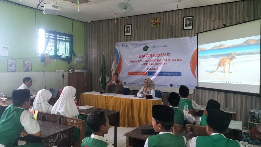 Sidoarjo – MIN 2 Sidoarjo kembali mengadakan kegiatan UPGRADING bagi siswa kelas 4, 5, dan 6 dengan tema yang berbeda sesuai jenjang kelas. Kegiatan yang berlangsung pada hari Senin (tanggal dapat disesuaikan) ini bertujuan untuk meningkatkan kesadaran siswa terhadap isu-isu penting dalam kehidupan sehari-hari, termasuk pencegahan bullying, pola hidup sehat, serta bahaya narkoba dan penguatan karakter melalui Emotional Spiritual Quotient (ESQ).
