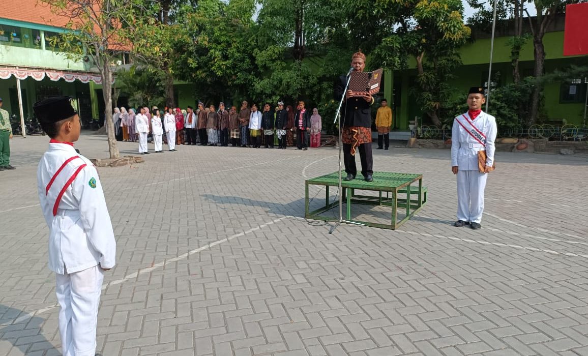 Sidoarjo, 25 Nopember 2023 – MTs Negeri 4 Sidoarjo memeriahkan Hari Guru Nasional dengan menggelar upacara yang megah pada tanggal 25 Nopember 2023. Acara berlangsung di halaman Kampus 1 MTs Negeri 4 Sidoarjo dan dihadiri oleh seluruh civitas akademika, guru, dan siswa mulai dari kelas 7,8 dan 9, siswa berseragam batik hijau sedangkan yang menarik Bapak / Ibu dewan guru memakai baju adat daerah.