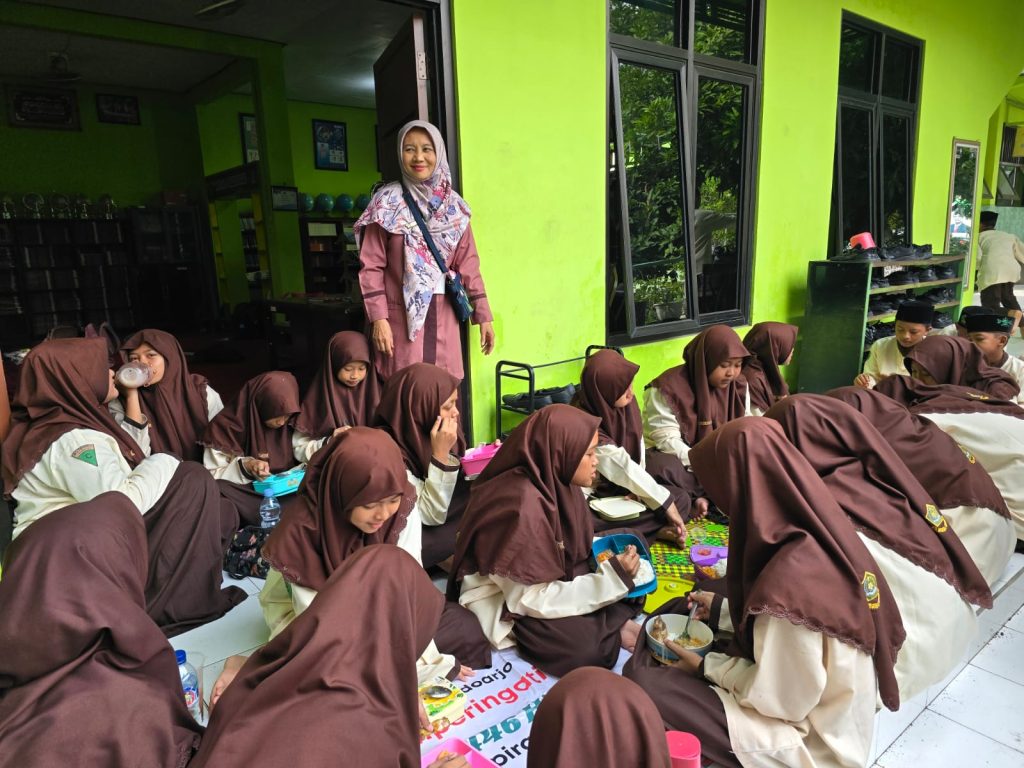Acara makan bersama dimulai pukul 08.30 di halaman sekolah dengan suasana penuh kebersamaan. Seluruh siswa dan guru duduk berkelompok menikmati bekal yang telah disiapkan dari rumah. Selain sebagai wujud peringatan Hari Gizi Nasional, kegiatan ini juga bertujuan untuk menanamkan pola makan sehat dan menjaga keberlanjutan lingkungan dengan mengurangi penggunaan kemasan plastik sekali pakai.