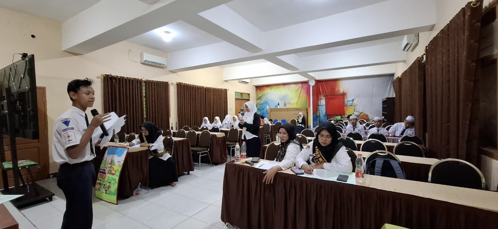 MTs Negeri 2 Sidoarjo – Suasana kompetitif namun sarat makna menyelimuti Aula Mini Madrasah Tsanawiyah Negeri (MTsN) 2 Sidoarjo hari ini, Selasa (29/7). Sebanyak 16 siswa-siswi terbaik, terdiri dari 7 laki-laki dan 9 perempuan, berkompetisi sengit dalam pemilihan Duta Moderasi Beragama MTsN 2 Sidoarjo. Ajang ini bertujuan untuk menjaring talenta muda yang tidak hanya cerdas, tetapi juga memiliki komitmen kuat dalam menyuarakan dan mengimplementasikan nilai-nilai moderasi beragama di lingkungan sekolah maupun masyarakat.