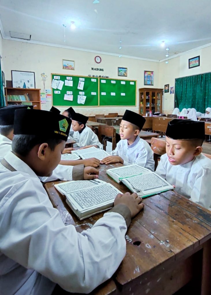 Peserta didik kelas I hingga IV diajak untuk mengenal lebih dekat kehidupan santri melalui kegiatan tadarus bersama. Kegiatan ini tidak hanya melatih bacaan Al-Qur’an, tetapi juga menumbuhkan rasa cinta terhadap kitab suci. Sementara itu, peserta didik kelas V dan VI mengikuti kegiatan yang lebih intensif, seperti sholat dhuha, sholat hajat, istighosah, dan majlis ilmu.