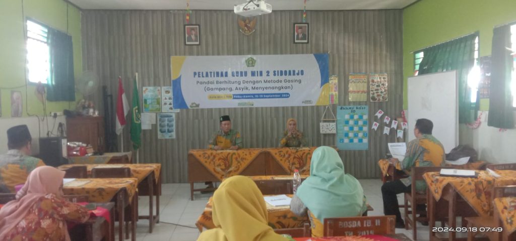 Madrasah Ibtidaiyah Negeri (MIN) 2 Sidoarjo telah sukses menggelar pelatihan berhitung menggunakan Metode Gasing pada tanggal 18-19 September 2024. Kegiatan ini diikuti oleh Guru kelas dan Guru Mata Pelajaran yang bertujuan untuk meningkatkan kemampuan berhitung cepat dan efektif.