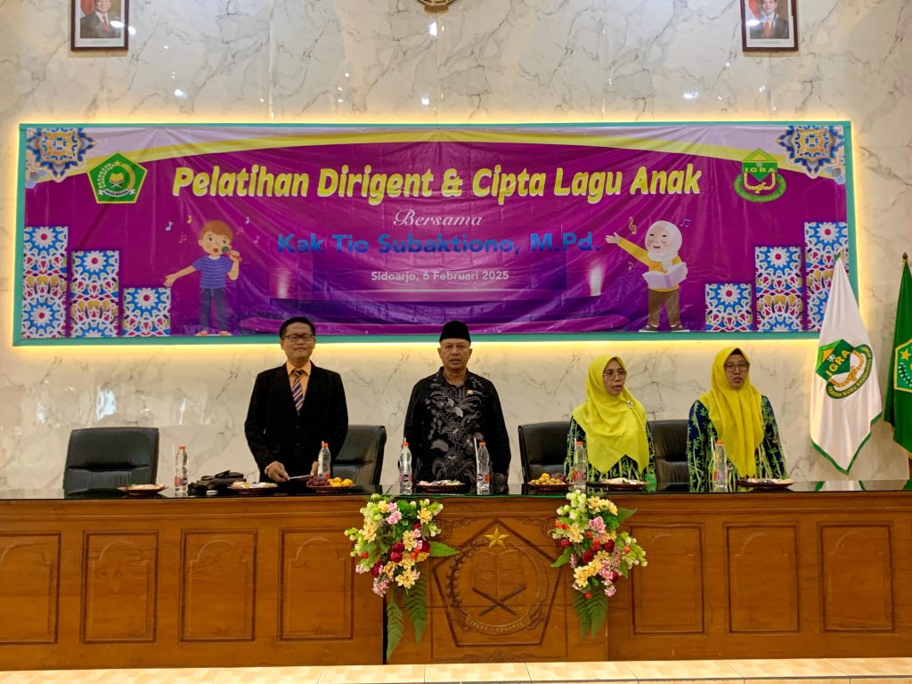 Sidoarjo, 7 Februari 2025 – IGRA Kabupaten Sidoarjo mengadakan pelatihan bertema Dirigent dan Cipta Lagu Anak di Aula Al-Ikhlas I Kantor Kementerian Agama Kabupaten Sidoarjo. Acara ini diikuti oleh 100 orang kepala RA (Raudhatul Athfal) se-Kabupaten Sidoarjo.