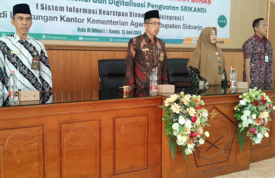 Sidoarjo (Humas) – Dalam upaya meningkatkan kualitas pengelolaan arsip dan tata naskah dinas, Kantor Kementerian Agama Kabupaten Sidoarjo menggelar acara Pembinaan Kearsipan dan Tata Naskah Dinas. Acara ini diselenggarakan di Aula Al Ikhlas I Kemenag Sidoarjo pada Kamis, 13 Juni 2024, dan dihadiri oleh 36 peserta yang terdiri dari pegawai kantor induk, Kantor Urusan Agama (KUA), dan satuan kerja (satker) madrasah.