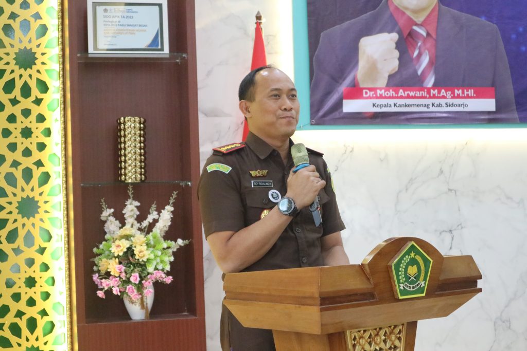 Acara ini dihadiri oleh Kepala Kajari Sidoarjo Roy Revalino Herudiansyah bersama Kepala Seksi Perdata dan Tata Usaha Negara Muslichan Darojad, Kepala Kemenag Sidoarjo Moh. Arwani, serta beberapa pejabat lainnya, termasuk Kasubag TU, para Kasi, Kepala KUA se-Kabupaten Sidoarjo, para penghulu, kepala satuan kerja, komite madrasah negeri, Pengawas Madrasah/PAIS, penyuluh agama serta pejabat fungsional kantor induk.