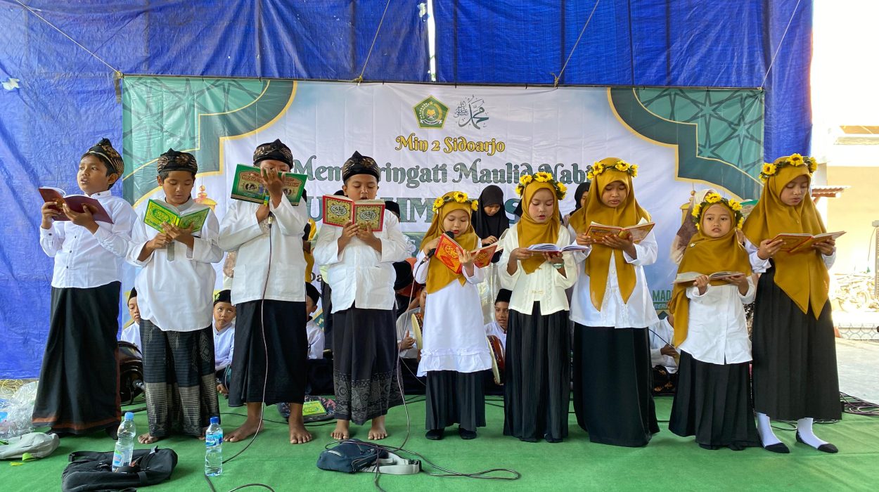 Dalam rangka memperingati Maulid Nabi Muhammad SAW, MIN 2 Sidoarjo menggelar acara yang penuh khidmat dan semarak pada hari Senin, 17 September 2024. Acara ini diawali dengan penampilan grup banjari dari siswa-siswi MIN 2 Sidoarjo yang melantunkan shalawat nabi. Kehadiran grup banjari ini berhasil menciptakan suasana syahdu sekaligus meriah, mengajak seluruh peserta acara untuk turut bershalawat.