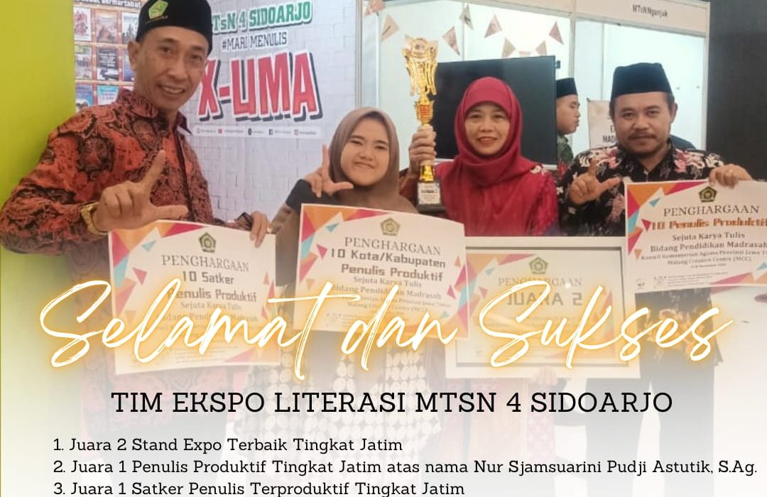 Dalam kompetisi literasi tingkat Jawa Timur tersebut, MTs Negeri 4 Sidoarjo berhasil meraih empat penghargaan bergengsi, yaitu: