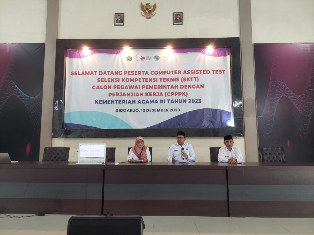 SKT tambahan ini dilaksanakan Hari Selasa, 12 Desember 2023 dengan titik lokasi bertempat di Auditorium MAN Sidoarjo yang digunakan CPPPK yang mengikuti tes dalam dua sesi. Kasubag TU Rohmat Nasrudin turut hadir memberikan pengarahan kepada seluruh peserta.