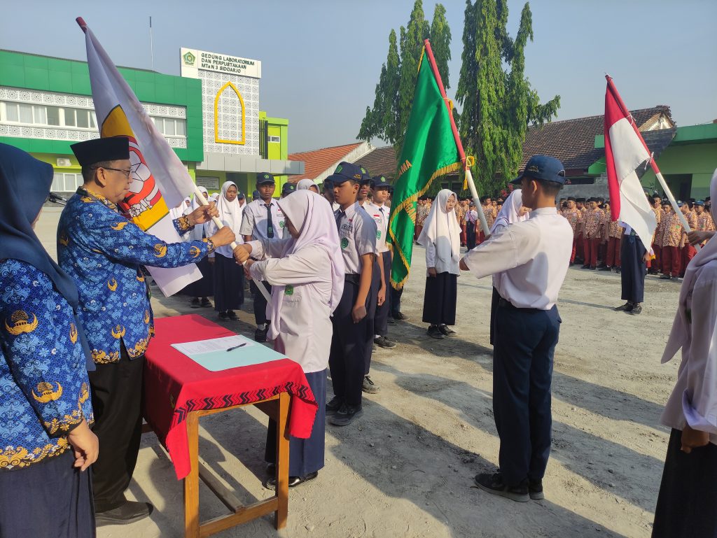 Sidoarjo, (MTsN 3) – MTs Negeri 3 Sidoarjo melaksanakan Upacara Serah Terima Jabatan Pengurus OSIS periode 2023/2024 ke periode 2024/2025. Pelantikan pengurus OSIS ini dibuka langsung oleh kepala madrasah, Drs. Jumakir, M.M. dan dihadiri oleh Pendidik dan Tenaga Kependidikan serta Peserta Didik MTs Negeri 3 Sidoarjo. Kamis (17/10/2024).