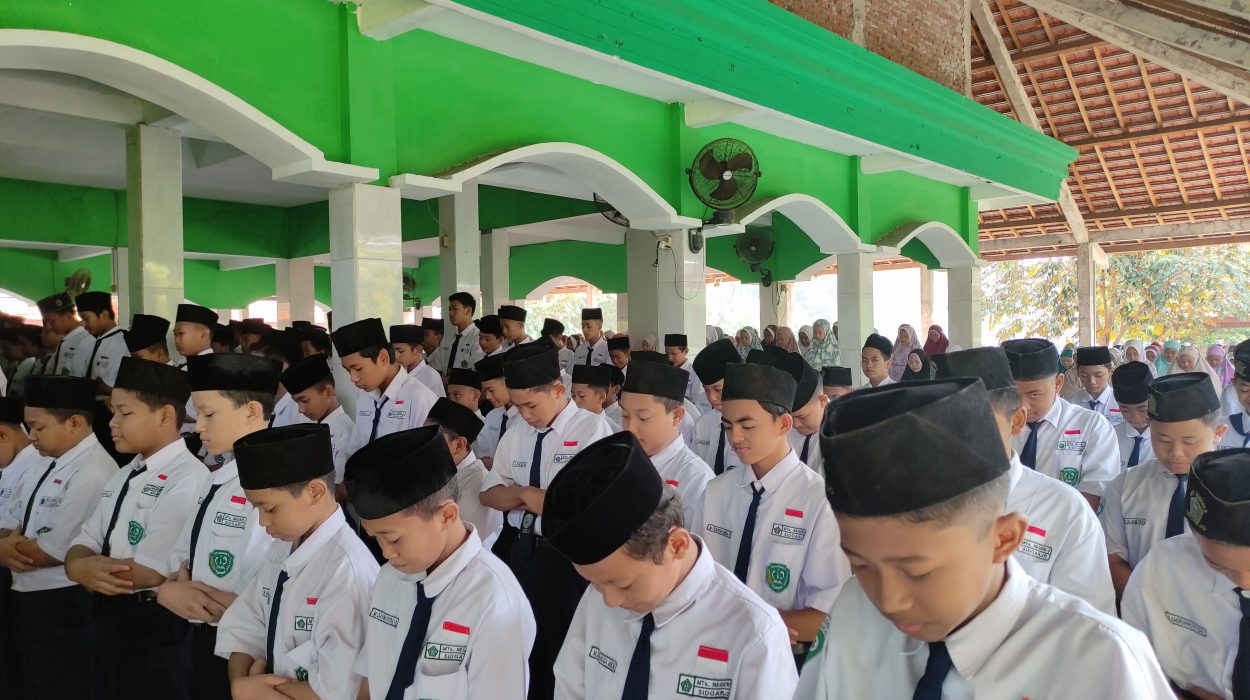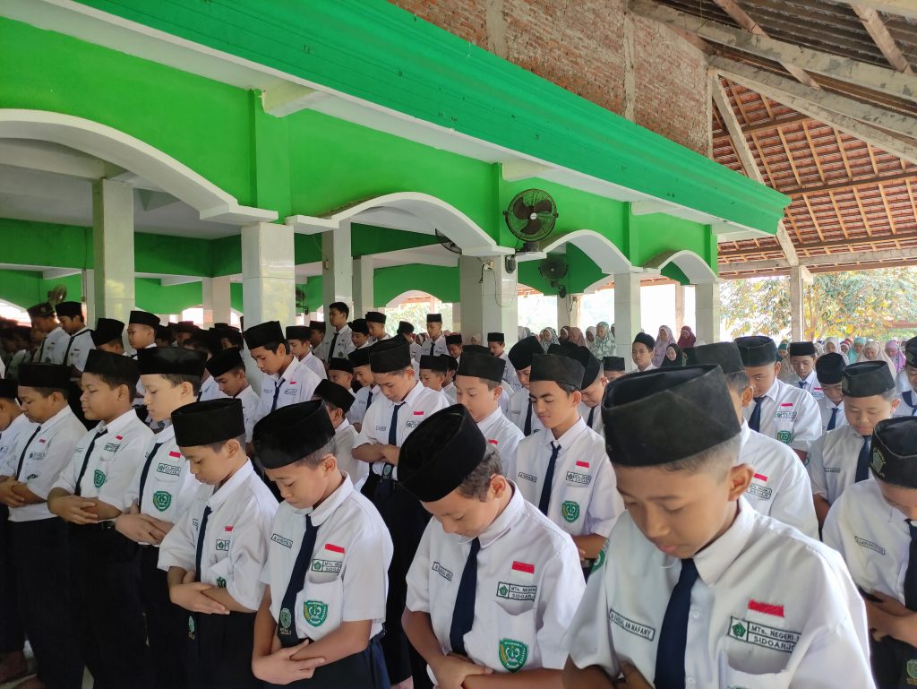 MTsN 3 Sidoarjo – Konflik kemanusiaan yang terjadi di jalur Gaza dan Tepi Barat membawa pilu yang amat mendalam bagi rakyat Palestina. Ribuan orang gugur dan korban jiwa terus bertambah setiap harinya akibat konflik ini. Sebagai bentuk kepedulian terhadap kaum muslimin korban syuhada pada kejadian konflik kemanusiaan di Palestina, MTsN 3 Sidoarjo menggelar sholat ghaib di masjid Baitul Hidayah MTsN 3 Sidoarjo, Selasa (07/11/2023).