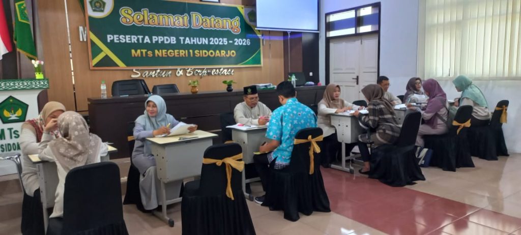 MTsN 1 Sidoarjo – MTsN 1 Sidoarjo kembali membuka Sistem Penerimaan Murid Baru (SPMB) melalui jalur reguler. Proses verifikasi berkas tengah berlangsung dengan antusiasme tinggi. Hingga hari ini, tercatat sebanyak 545 calon siswa telah terverifikasi, menandakan minat besar masyarakat untuk menjadi bagian dari madrasah unggulan ini.