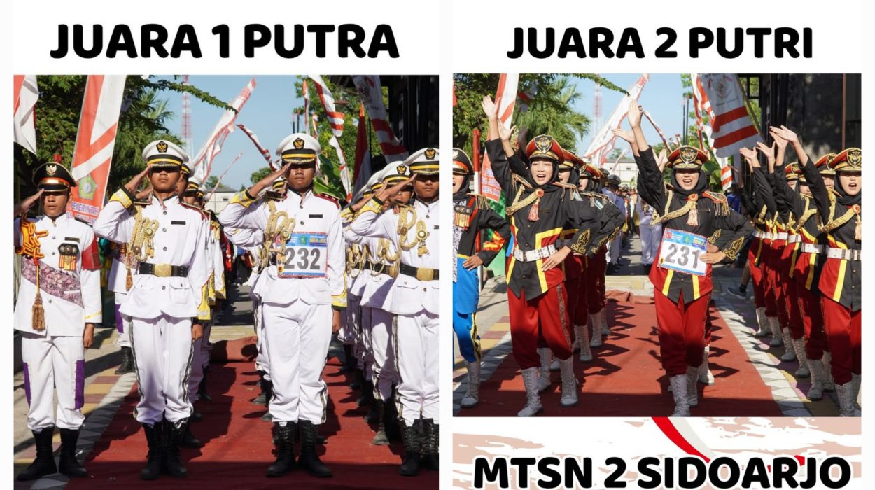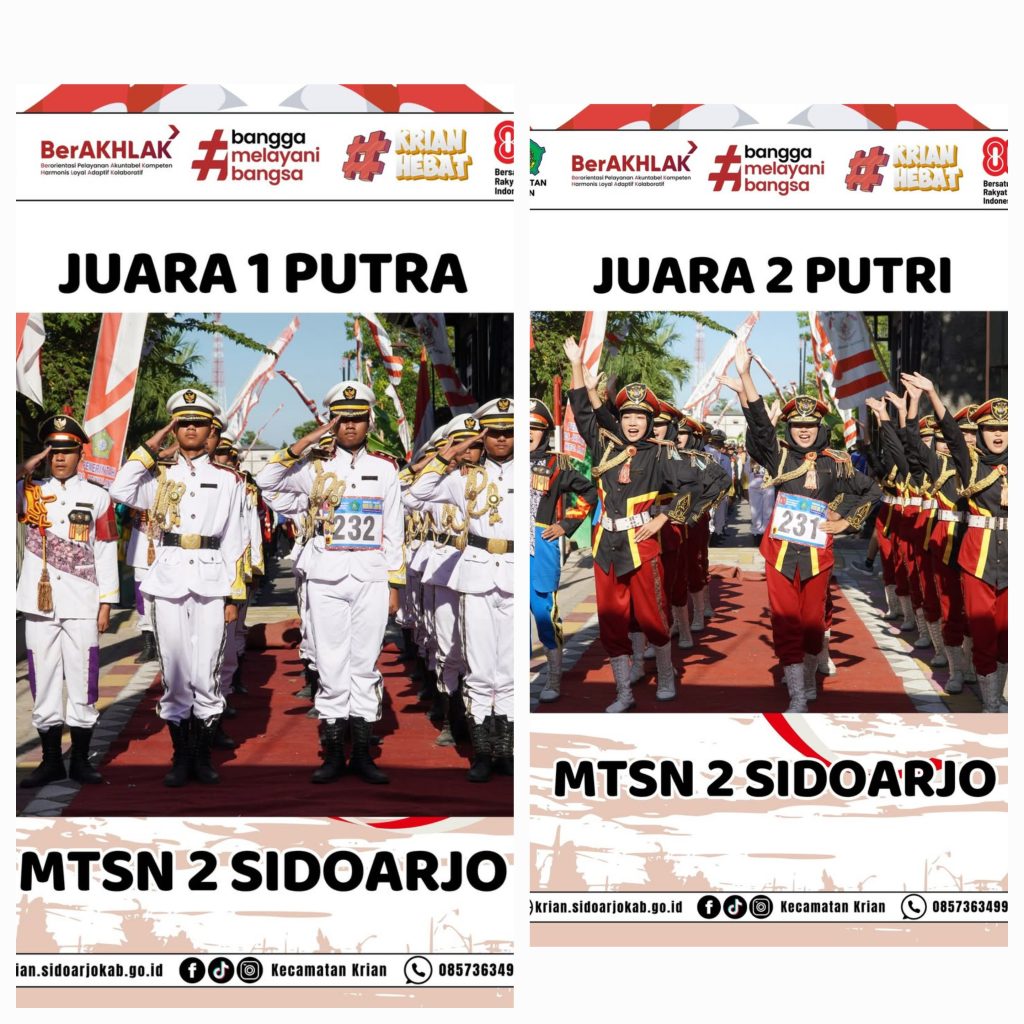 Tim Gerak Jalan MTsN 2 Sidoarjo Raih Juara 1 dan 2 di HUT ke-80 RI Kecamatan Krian