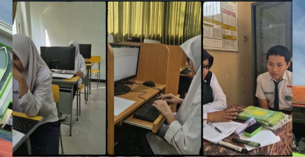 MTs Negeri 2 Sidoarjo – Gelora semangat belajar dan unjuk kebolehan mewarnai MTs Negeri 2 Sidoarjo hari ini. Sebanyak 320 siswa kelas IX tengah berjuang dalam ujian praktik yang menguji dua kompetensi krusial pada Senin hari ini. Sebelumnya mereka melewati ujian Olahraga, dan Seni budaya. Muatan informatika yang diujikan berupa kepiawaian mengoperasikan dasar-dasar Informatika dan kemantapan hafalan Al-Qur’an, khususnya Juz 30 dimulai dari Surah An-Naba.