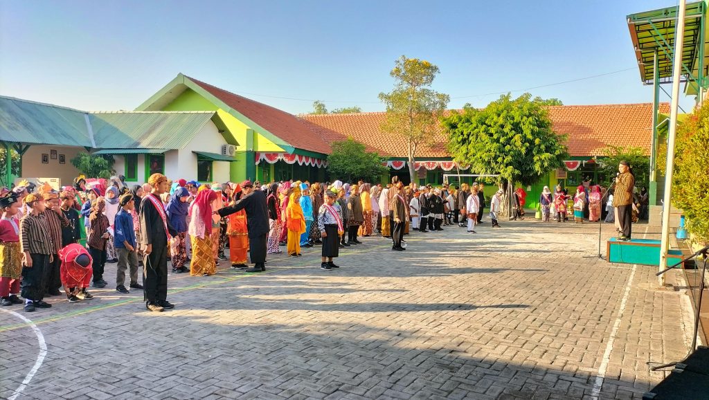 MI Negeri 2 Sidoarjo – MIN 2 Sidoarjo menyelenggarakan upacara Hari Kemerdekaan Republik Indonesia yang ke-79 pada hari Sabtu, 17 Agustus 2024 dengan penuh semangat kebangsaan. Kegiatan yang dilaksanakan di Halaman Madrasah ini menjadi momen yang istimewa, karena seluruh siswa Guru dan Karyawan mengenakan busana adat daerah dari berbagai penjuru Nusantara.