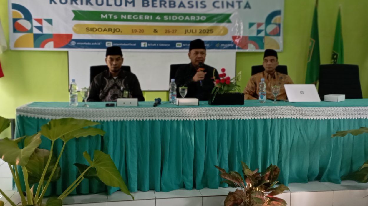 Sidoarjo, 25 Juli 2025— MTsN 4 Sidoarjo kembali menggelar kegiatan inspiratif dalam dunia pendidikan dengan menyelenggarakan Workshop Pembelajaran Deep Learning dan Kurikulum Berbasis Cinta. Bertempat di Aula MTsN 4 Sidoarjo, kegiatan ini bertujuan untuk meningkatkan pemahaman dan kapasitas guru dalam menerapkan pendekatan pembelajaran berbasis teknologi serta nilai-nilai kasih sayang dalam proses belajar-mengajar.